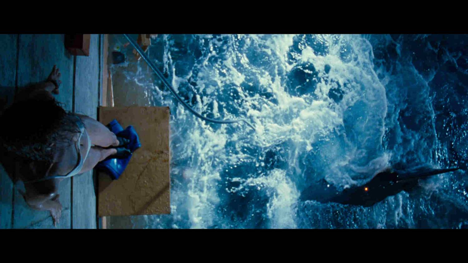 Но ещё вначале картины мы становимся свидетелями атаки одной такой акулы на катамаран с двумя парами молодых людей. Кстати, этот пролог напомнил среднестатистические молодёжные фильмы ужасов про всяких монстров из воды, но большая благодарность этому поступку финскому режиссёру Ренни Харлину. Он специально начал фильм таким образом, что стартовые эмоции сходятся в негативной стороне, а затем, когда начинается основное действие, то от экрана уже невозможно отвести взгляд. Быстрые смены, резкие переходы, пугающие моменты, неожиданность — всё это есть в «Глубоком синем море». Именно, на мой взгляд, режиссура сыграла основную роль в том, что фильм стал настолько удачным.